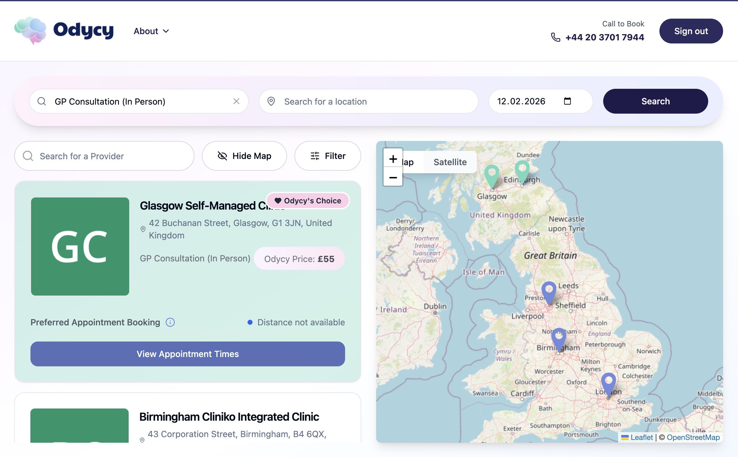 A UK-based private healthcare marketplace that simplifies the patient journey through integrated search, booking, and payment — replacing a No-Code prototype with a production-grade, enterprise-ready platform.